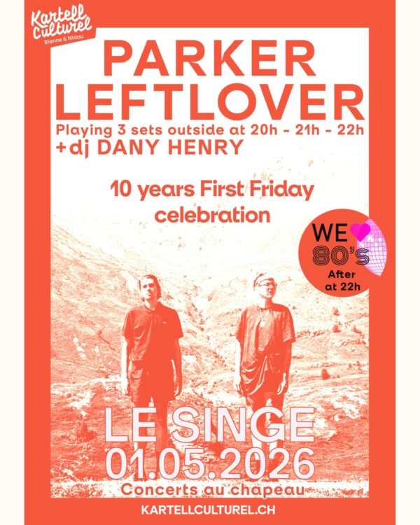 Parker Leftlover spielen 3 Sets um 20.00, 21.00, 22.00, dazwischen legt DJ Dany Henry Platten auf.